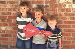 Wells Fargo, Military Warriors Support Foundation donate home to veteran Joseph Jr., 7, Hunter, 5, and Logan, 3, Quain pose for a photo with their new home, given to their family by Wells Fargo and the Military Warriors ...