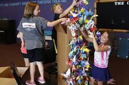 Cheyenne theater students donate paper cranes for peace From left, Laura Van Horn, Luke Hurst and Samantha Hurst put paper origami cranes into a box for shipment to Japan on Wednesday inside the Mary ...