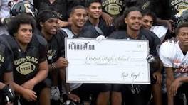 Patriots Donate $10000 To Central High School Football Program Pro Football & Patriots Team Hall of Famer Andre Tippett presenting a check Wednesday to the Central High School football program for $10,000.
