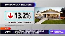 Mortgage demand plunges 13.2% to end 2022, as interest rates head higher again - CNBC      Mortgage application volume was down 13.2% at the end of last week from two weeks earlier as interest rates rose again.